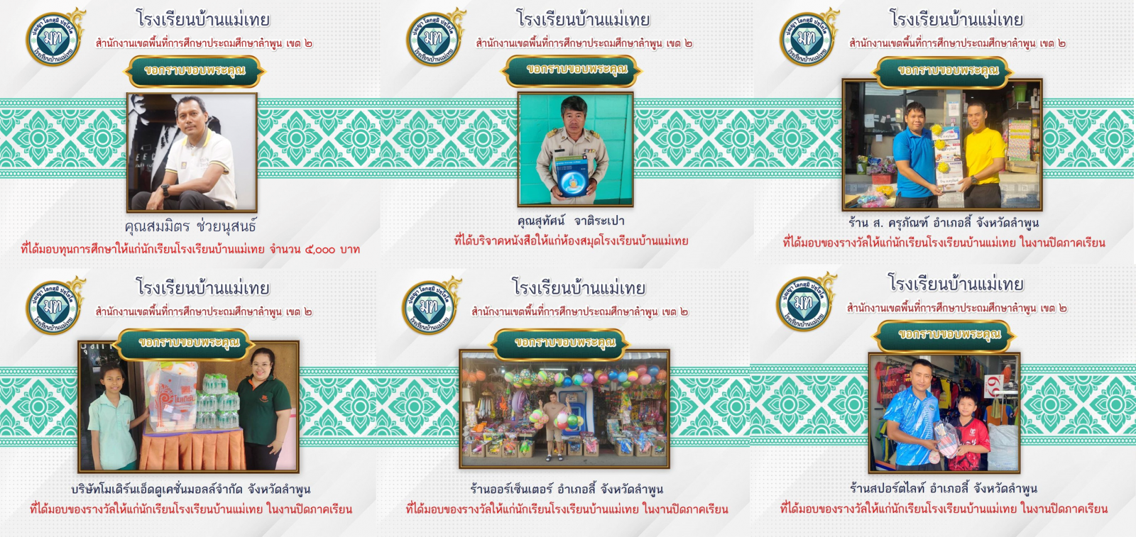 6. โรงเรียนบ้านแม่เทย ขอกราบขอบพระคุณ ร้านสปอร์ตไลท์ อำเภอลี้ จังหวัดลำพูน ที่ได้มอบของรางวัลให้แก่นักเรียนโรงเรียนบ้านแม่เทย ในงานปิดภาคเรียน ปีการศึกษา 2566