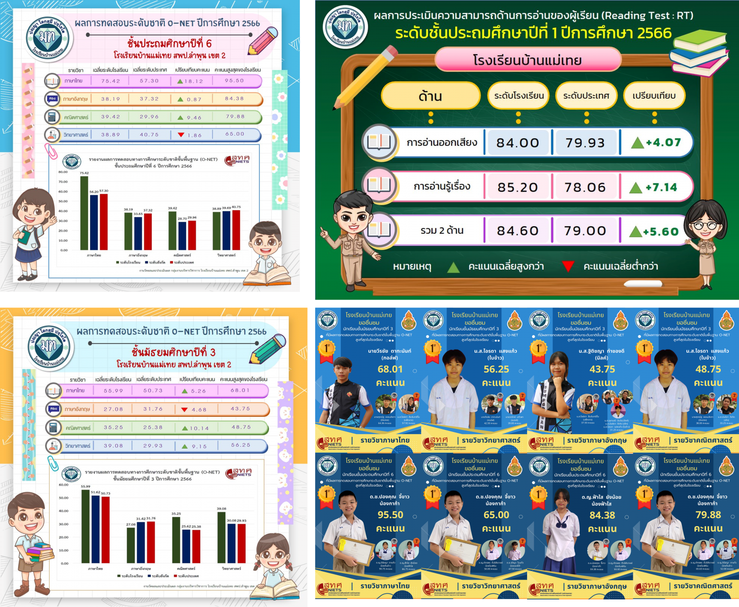 สารสนเทศด้านผลการประเมิน ONET และ NT ปีการศึกษา 2566 ของโรงเรียนบ้านแม่เทย