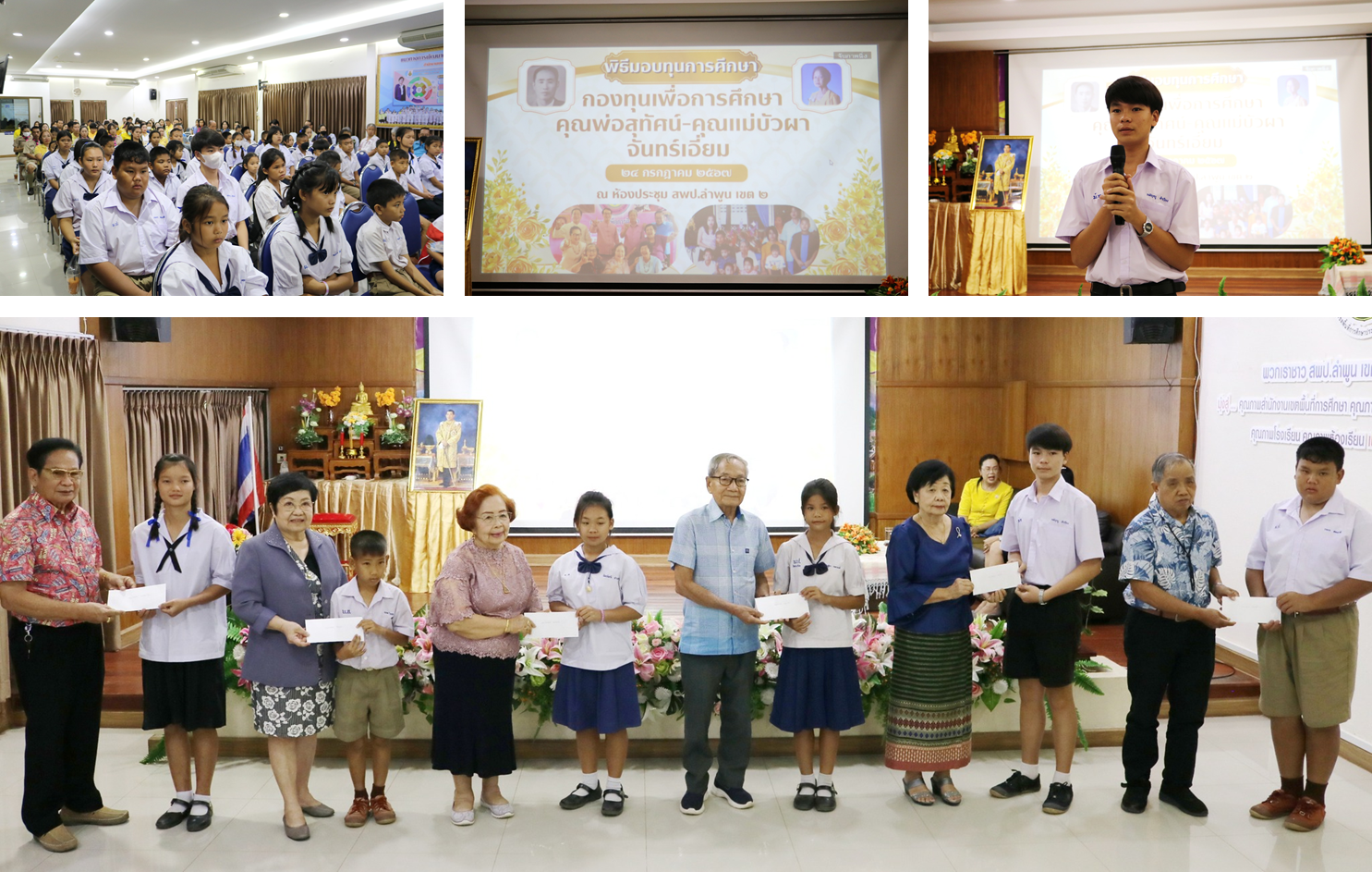 เมื่อวันที่ 24 กรกฎาคม 2567 ผอ.ณัฐนนท์ ศรีกิตตินนท์ ได้มอบหมายให้คุณครูทศพร ทองสอน นำ เด็กชายกตัญญู คำเวียง นักเรียนชั้นมัธยมศึกษาปีที่ 3 เข้ารับทุนการศึกษาจากกองทุนเพื่อการศึกษาคุณพ่อสุทัศน์-คุณแม่บัวผา จันทร์เอี่ยม ณ ห้องประชุม 1 สพป.ลำพูน เขต 2