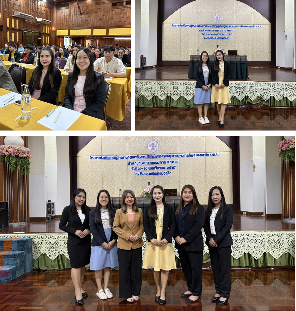 เมื่อวันที่ 29-30 พฤศจิกายน 2567 ผอ.ณัฐนนท์ ศรีกิตตินนท์ ได้มอบหมายให้คุณครูจารุวรรณ สิงห์ลอ และคุณครูสุภาพ สุทำแปงเข้าร่วมอบรมโครงการส่งเสริมความรู้ทางด้านกฎหมายในการปฏิบัติหน้าที่แก่ครูและบุคลากรทางการศึกษาและสมาชิก ช.พ.ค. สำนักงานคณะกรรมการ สกสค. ณ ห้องรอยัล ออคิด บอลรูม โรงแรมเชียงใหม่ออคิด อ.เมือง จ.เชียงใหม่